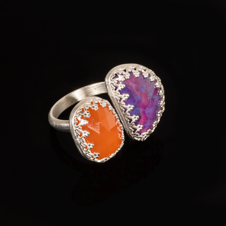 Materials: Sterling Silver, Mohave Turquoise, Carnelian