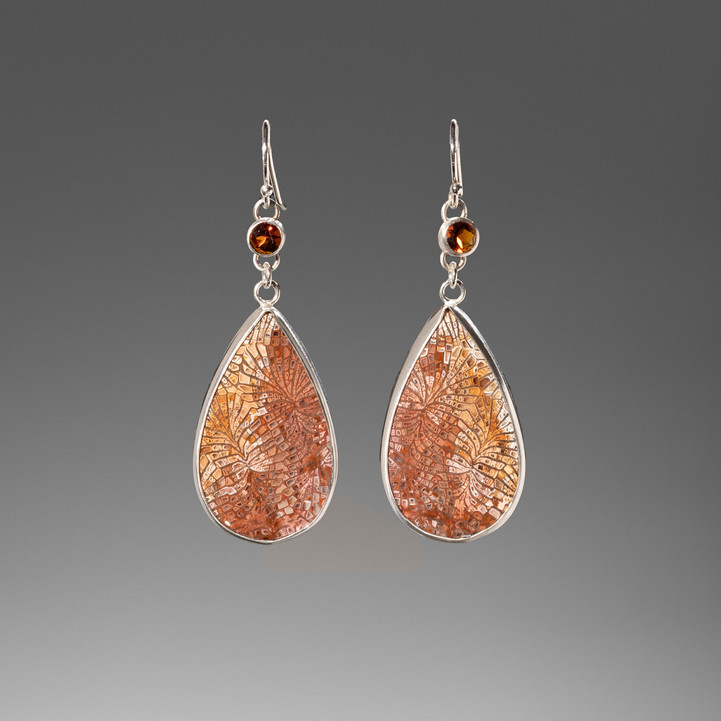 Materials : Sterling Silver, Citrine, Fossilized Coral